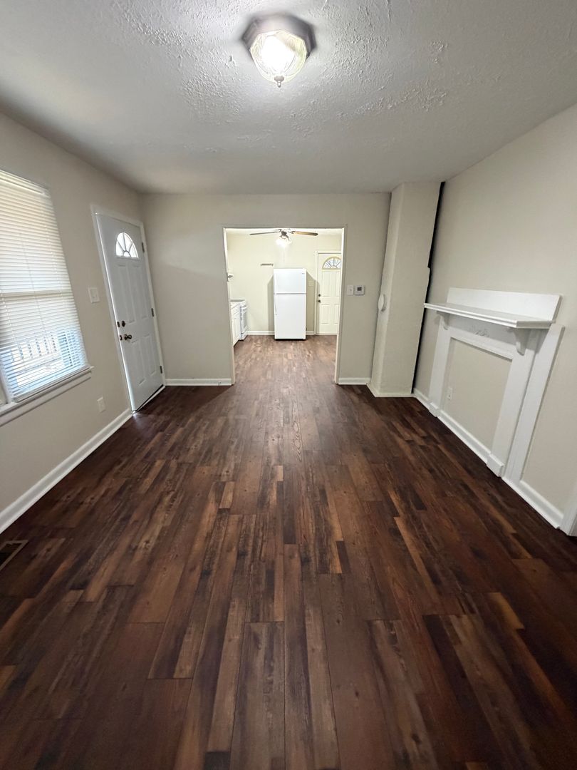 Recently updated 2BR/1BA house on nice lot with off street parking and fenced in yard! Heat pump provides heating and air conditioning. Open floor plan with kitchen/dining and living area all together. Ramp on the front provides disability access. Large back yard for playing and relaxing.